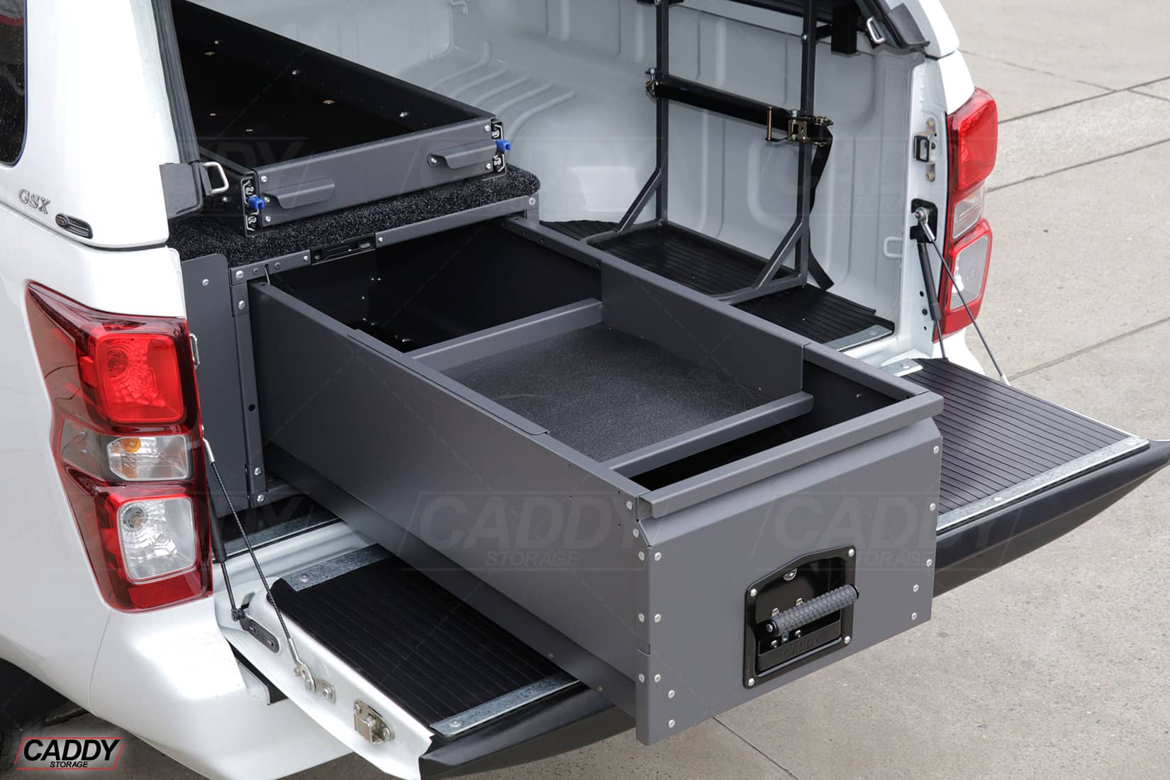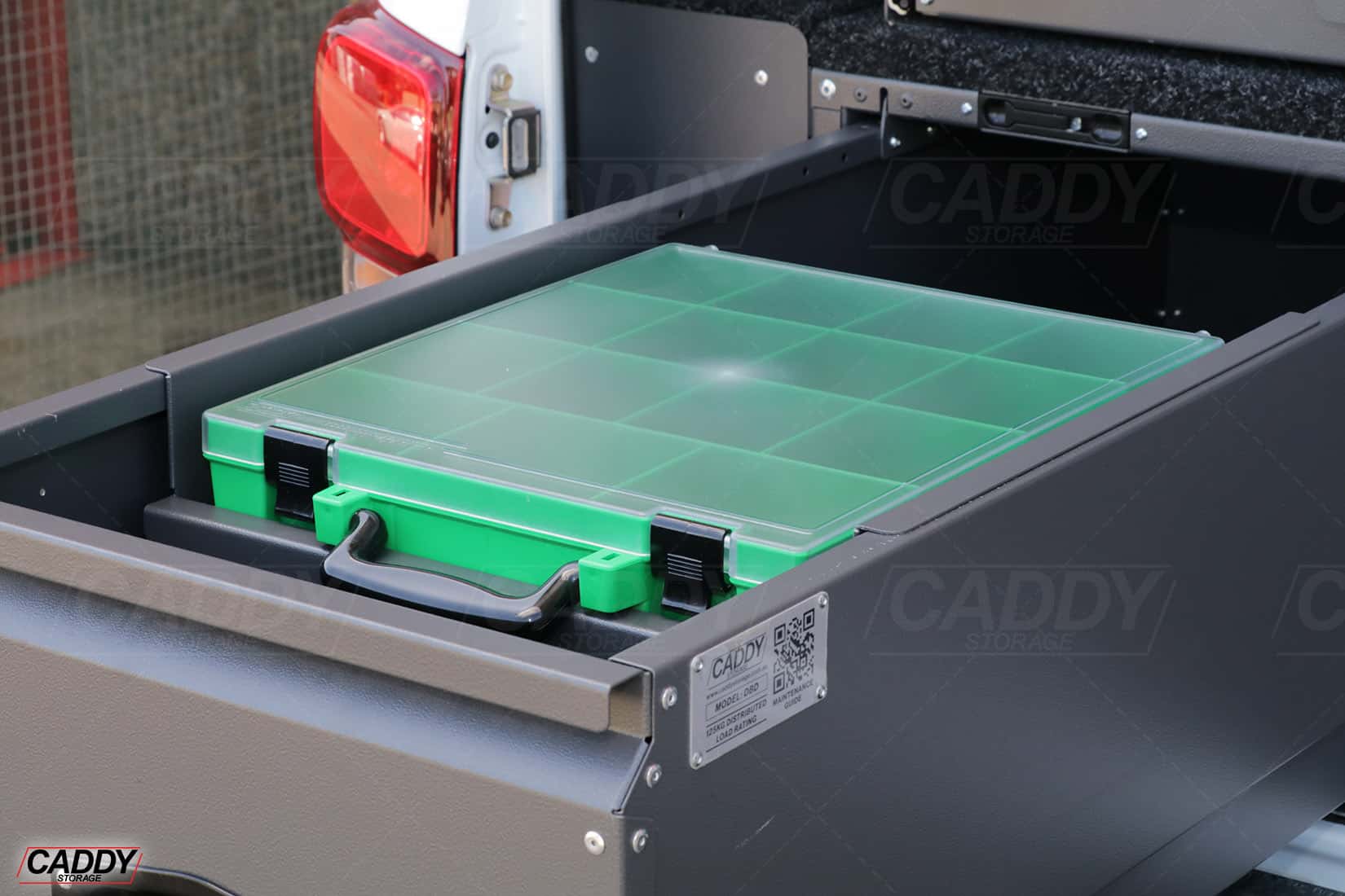 No more digging, no more clutter. With a fully adjustable position along the drawer rails, you can tailor your setup to match the way you work. The durable grey powder coat finish blends seamlessly with your existing system, while the foam rubber lining keeps everything in place—reducing noise, preventing movement, and protecting your gear on the go.